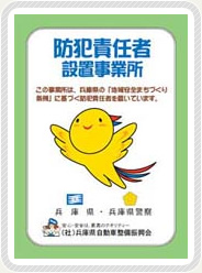 「防犯責任者」 が設置されたお店には、このステッカーを掲示しています。